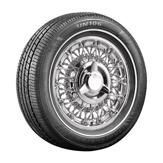 Travelstar UN106 is a timelessly stylish whitewall tire that combines a classic look with modern all-season performance. Available with 9 mm, 14 mm, and 18 mm white stripes. Travelstar UN106 is an excellent choice for American cars, classics, and customs, where appearance is paramount without sacrificing excellent driving characteristics.