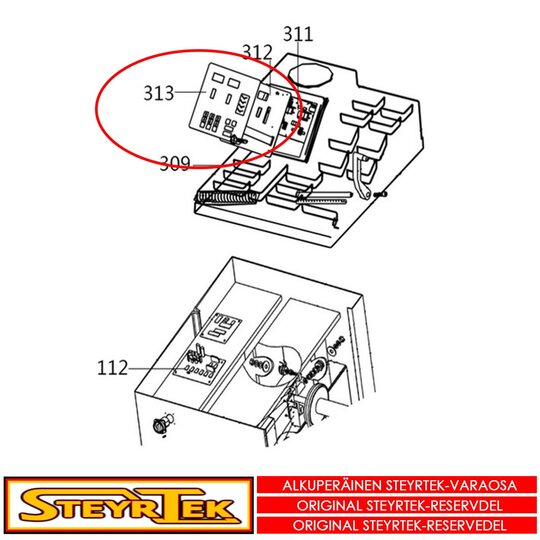 Denna del passar din valda maskin. Samma del passar flera SteyrTek-maskiner, så sprängvyn är inte nödvändigtvis från samma maskin.